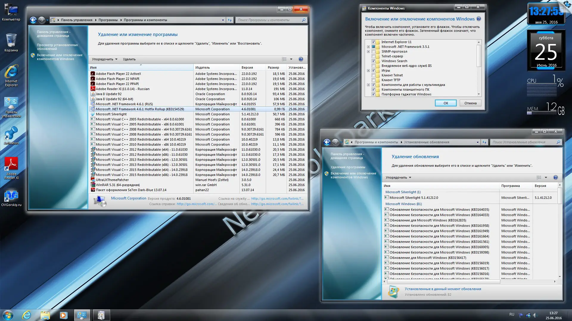 В программу встроены автоматические установочные пакеты с приложениями, включая обновлённый Internet Explorer 11, WinRAR, Adobe Flash Player, Java SE Runtime Environment, Microsoft Silverlight, .NET Framework 4.6.1, Visual C++ обновления, DirectX и Adobe Reader XI. Всё это позволяет сразу после установки системы иметь полноценный набор инструментов для работы и развлечений.