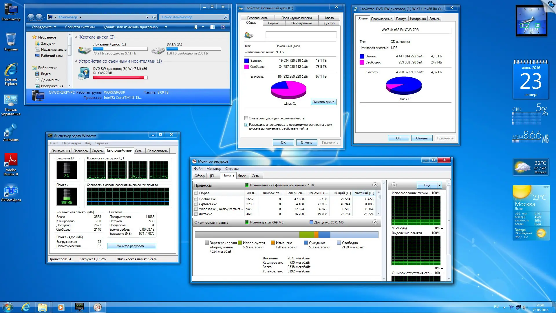 Данная сборка подходит для компьютеров с минимальными характеристиками, обеспечивающими комфортную работу Windows 7.