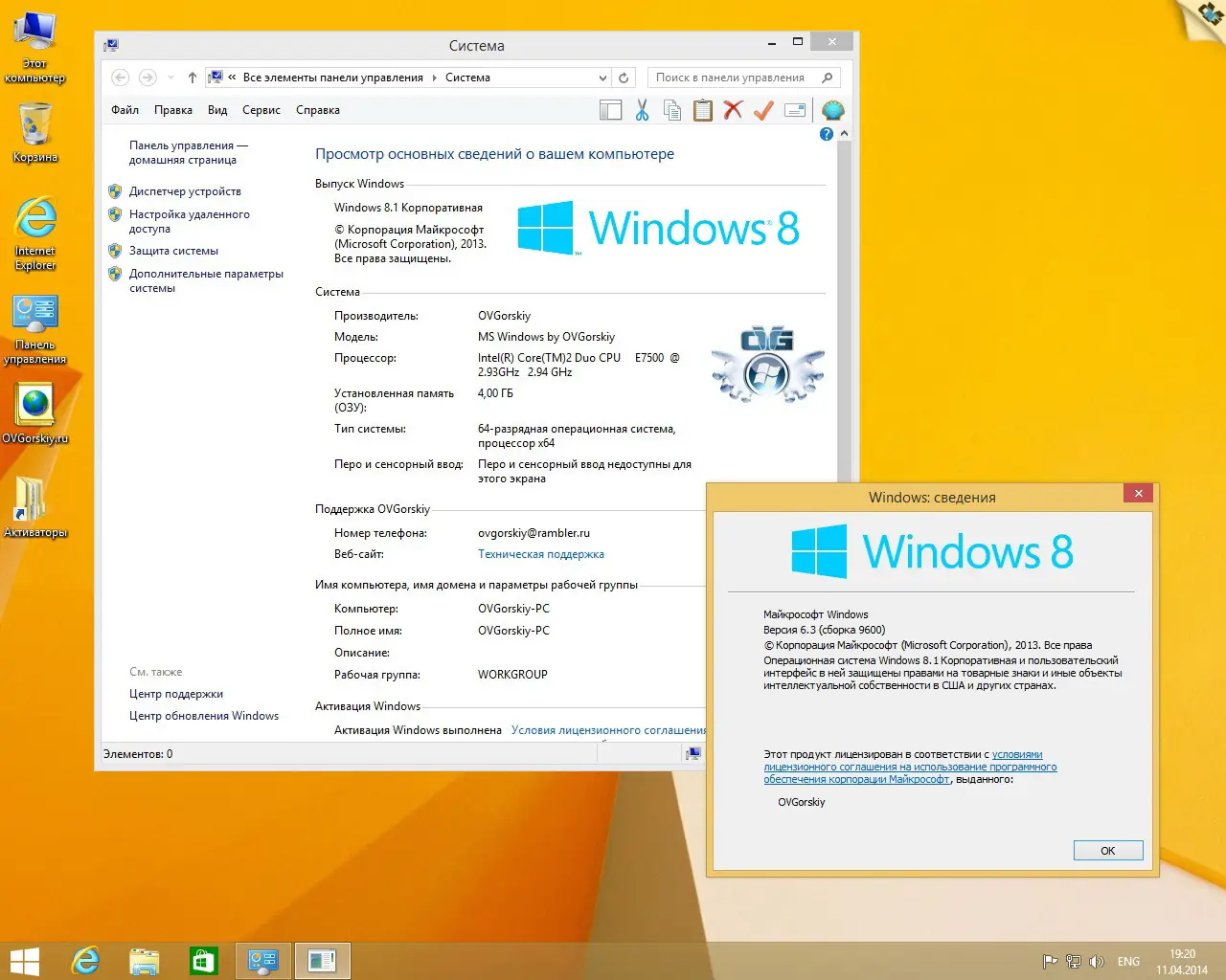 Операционная система | Чистая установка Windows 8.1 Enterprise Edition |