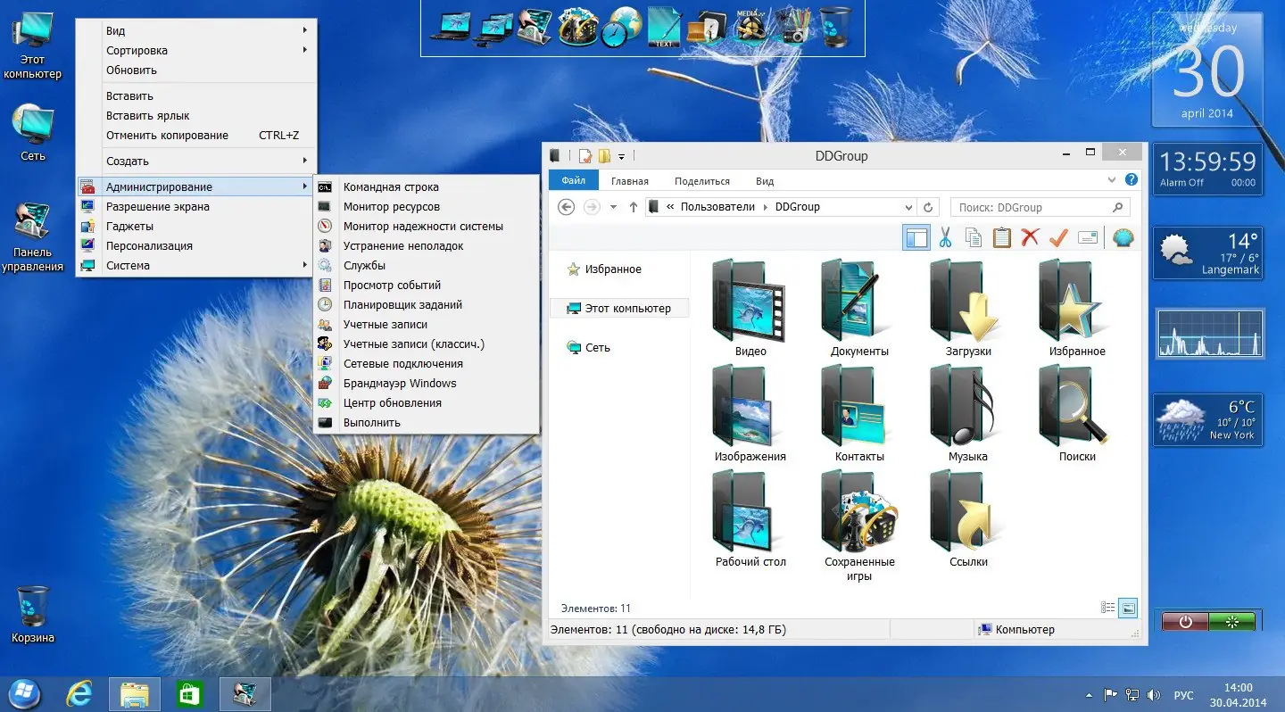 - Расширенное меню ПКМ и дополнительные темы для рабочего стола.