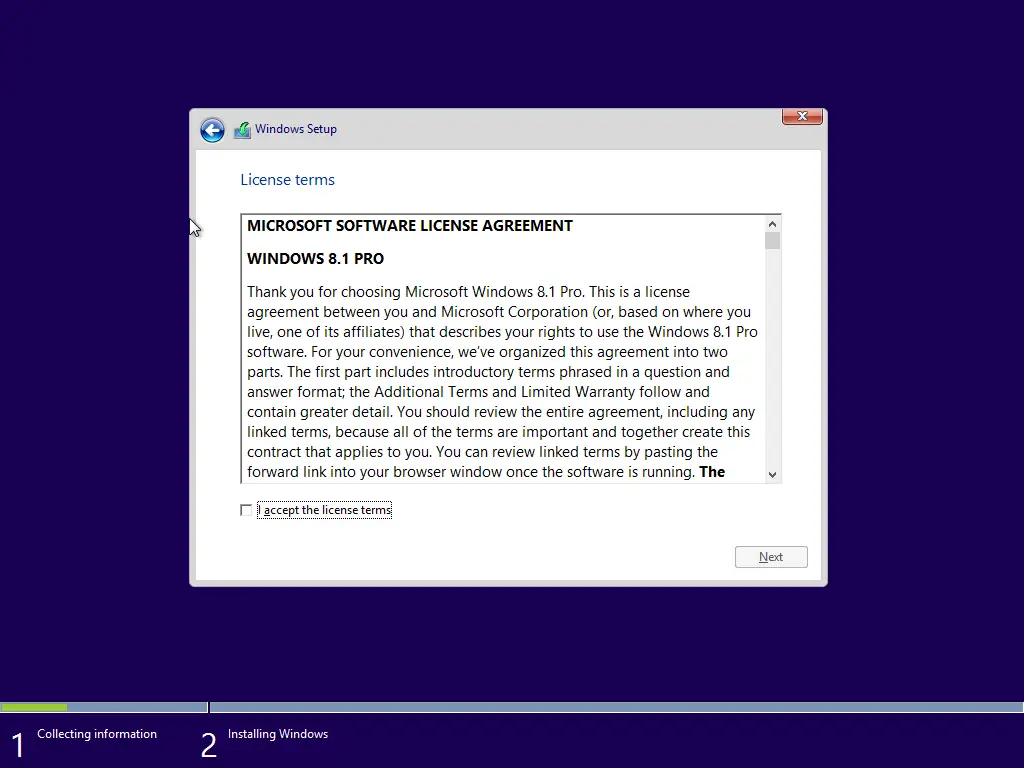 - Загрузиться с подготовленного носителя, установочного экрана следовать инструкциям мастера установки.