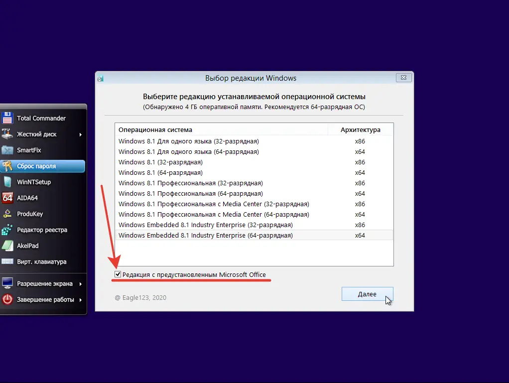 - Следуйте инструкциям мастера установки, выбрав нужные опции, установочный язык и редакцию Windows.