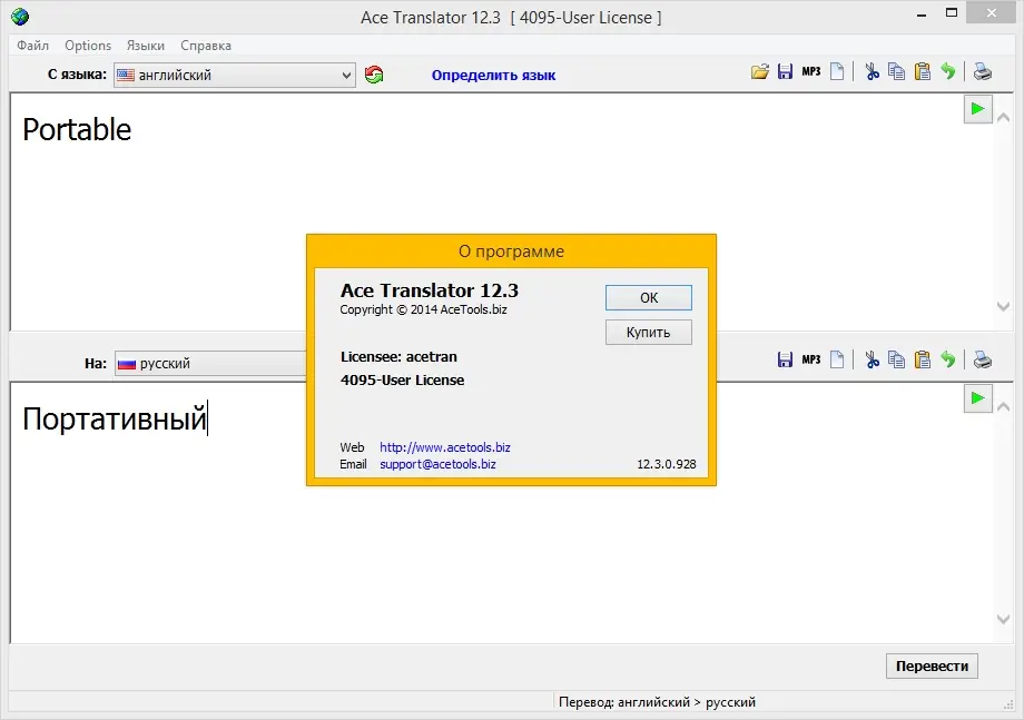 Ace Translator — это современный инструмент для перевода текста, который подходит как для профессионалов, так и для обычных пользователей. Благодаря высокой скорости обработки и качеству перевода, программа позволяет быстро получать точные результаты. Маленький размер и возможность работы с различными языками делают ее универсальным решением для различных задач. Встроенная функция преобразования текста в речь (TTS) обеспечивает озвучивание переводимых материалов, что особенно полезно при изучении иностранных языков или прослушивании текстов в пути.