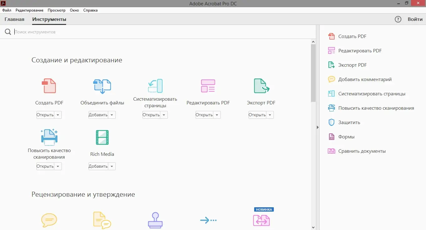 Вам доступен широкий набор инструментов для преобразования и редактирования PDF, добавления электронных подписей, а также автоматизации работы с документами. Горячие функции позволяют мгновенно редактировать отсканированные документы, добавлять аудио- и видеозаписи, удалять конфиденциальную информацию и вести согласованную подготовку файлов с помощью управляемых действий. Acrobat DC идеально подходит для профессионалов, нуждающихся в быстрой обработке PDF в любой ситуации.