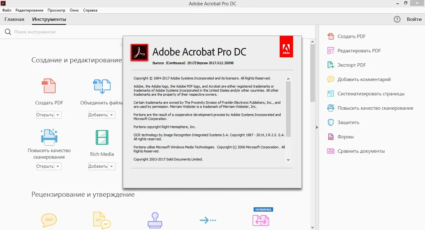 - Установите программу, запустите Acrobat, примите лицензионные условия.