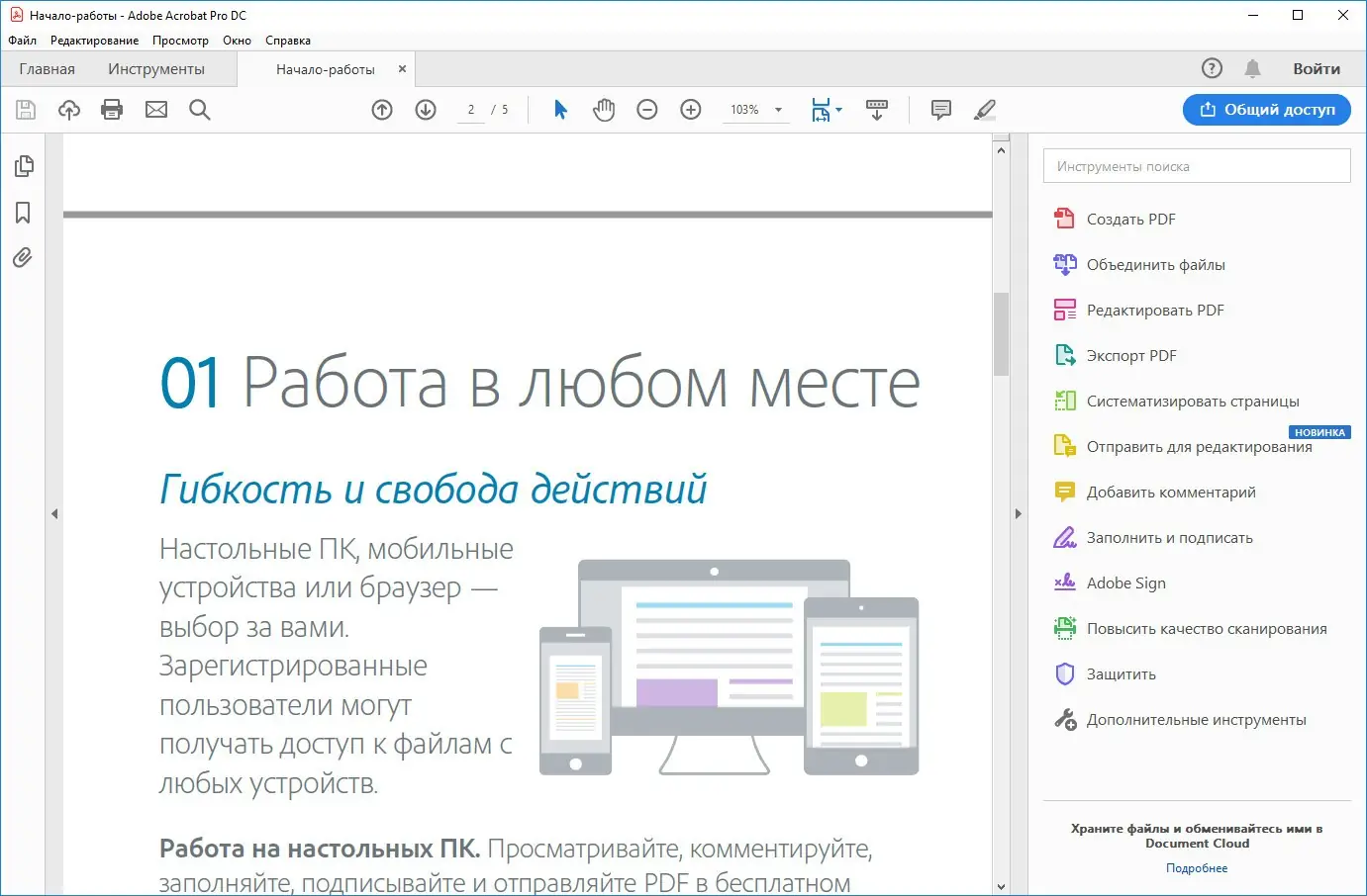 Adobe Acrobat предоставляет мощный набор инструментов для работы с файлами PDF, делает процесс создания и редактирования максимально простым и удобным, а интеграция с облачными услугами способствует повышению эффективности работы.