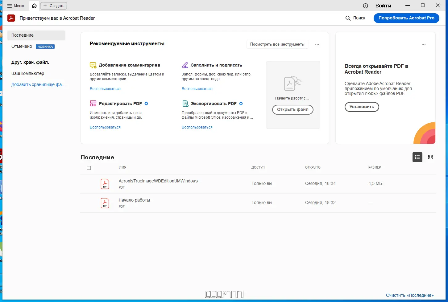 - Интеграция с облачными хранилищами Adobe Document Cloud.