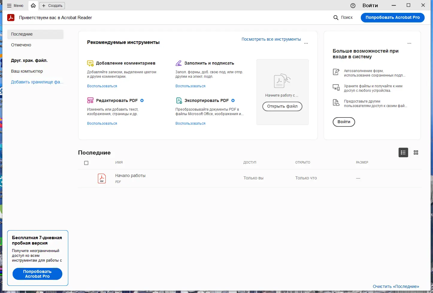Adobe Acrobat Reader позволяет быстро и удобно открывать документы в формате PDF, предоставляя пользователю широкие возможности для их редактирования, комментирования и подписания. Бесплатная версия программы DC содержит все необходимые инструменты для просмотра и печати файлов, а интеграция с облачными сервисами Adobe Document Cloud дает возможность работать с документами на компьютерах и мобильных устройствах без ограничений. Благодаря поддержке русского языка, скачивание и установка программы становятся максимально простыми и понятными для пользователей со всего мира.