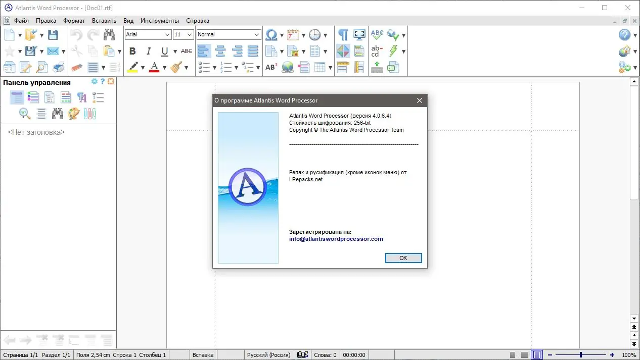 Интерфейс программы полностью настраиваемый и напоминает популярные редакторы старых версий Microsoft Word, что обеспечивает легкое освоение. Одновременно можно работать с несколькими документами в отдельных вкладках, управляя их отображением в различных режимах. Помимо этого, программа включает функции архивации документа, шифрования с помощью 256-битного алгоритма, автоматического резервного копирования и режима веб-документа. Всё это делает Atlantis Word Processor универсальным инструментом для создания и редактирования текстовых материалов любой сложности.