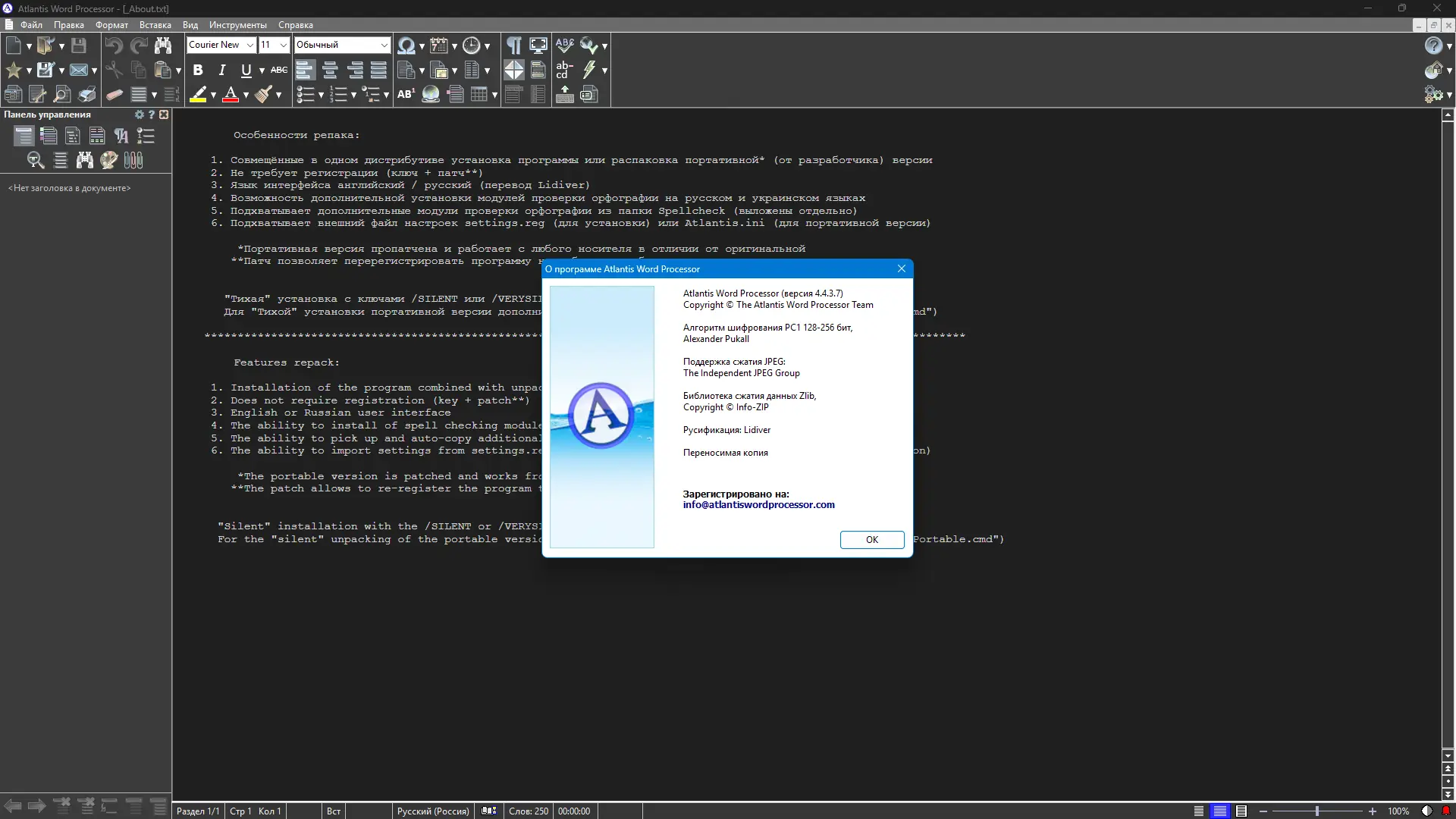 Atlantis Word Processor — это мощный текстовый редактор, идеально сопоставимый с популярными офисными решениями. Он предназначен для создания, редактирования и форматирования документов в различных форматах, включая DOC, DOCX, RTF, а также поддерживает множество изображений и шаблонов. Программа обладает удобной панелью управления, похожей на интерфейс в Microsoft Word, что облегчает освоение даже для новичков. В числе её преимуществ — расширенный буфер обмена, возможность архивации и шифрования документов, автоматическая проверка орфографии и наличие различных режимов отображения документа. Atlantis Word Processor можно открыть в нескольких вкладках и управлять несколькими файлами одновременно, что повышает продуктивность работы.