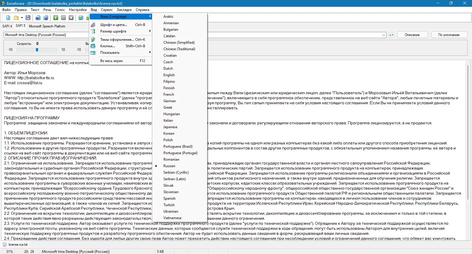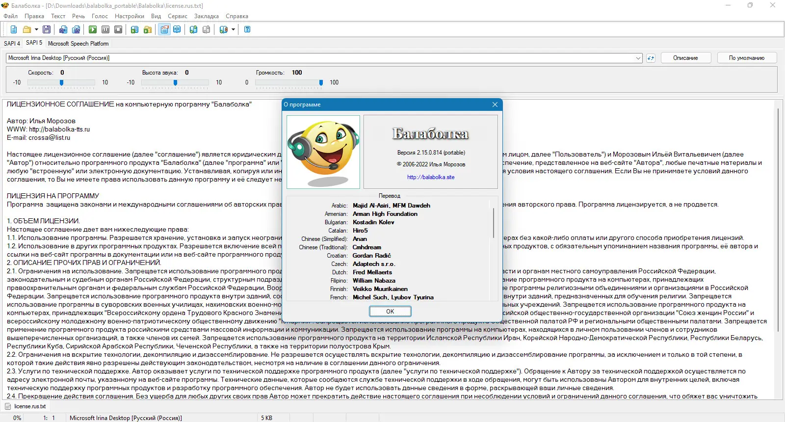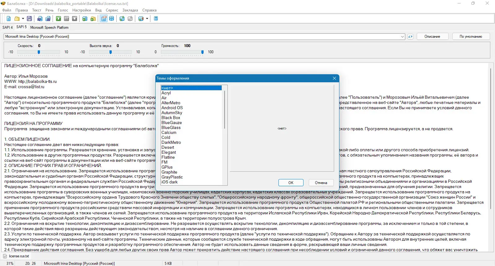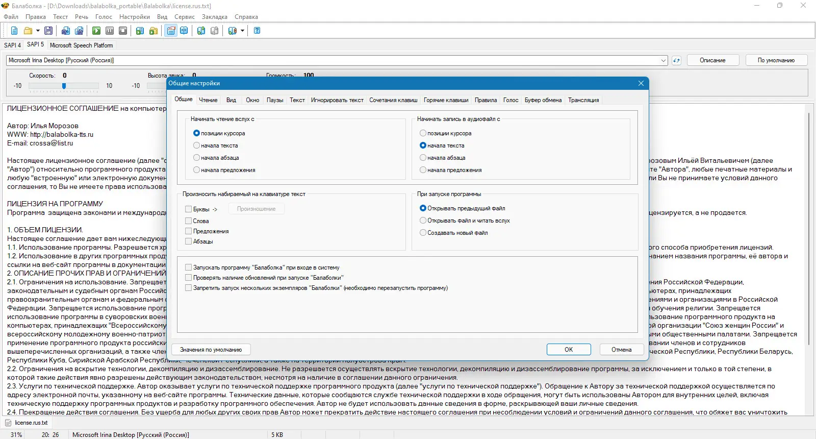 Обратите внимание, чтобы программа корректно работала, на компьютере должен быть установлен хотя бы один речевой синтезатор (голос).