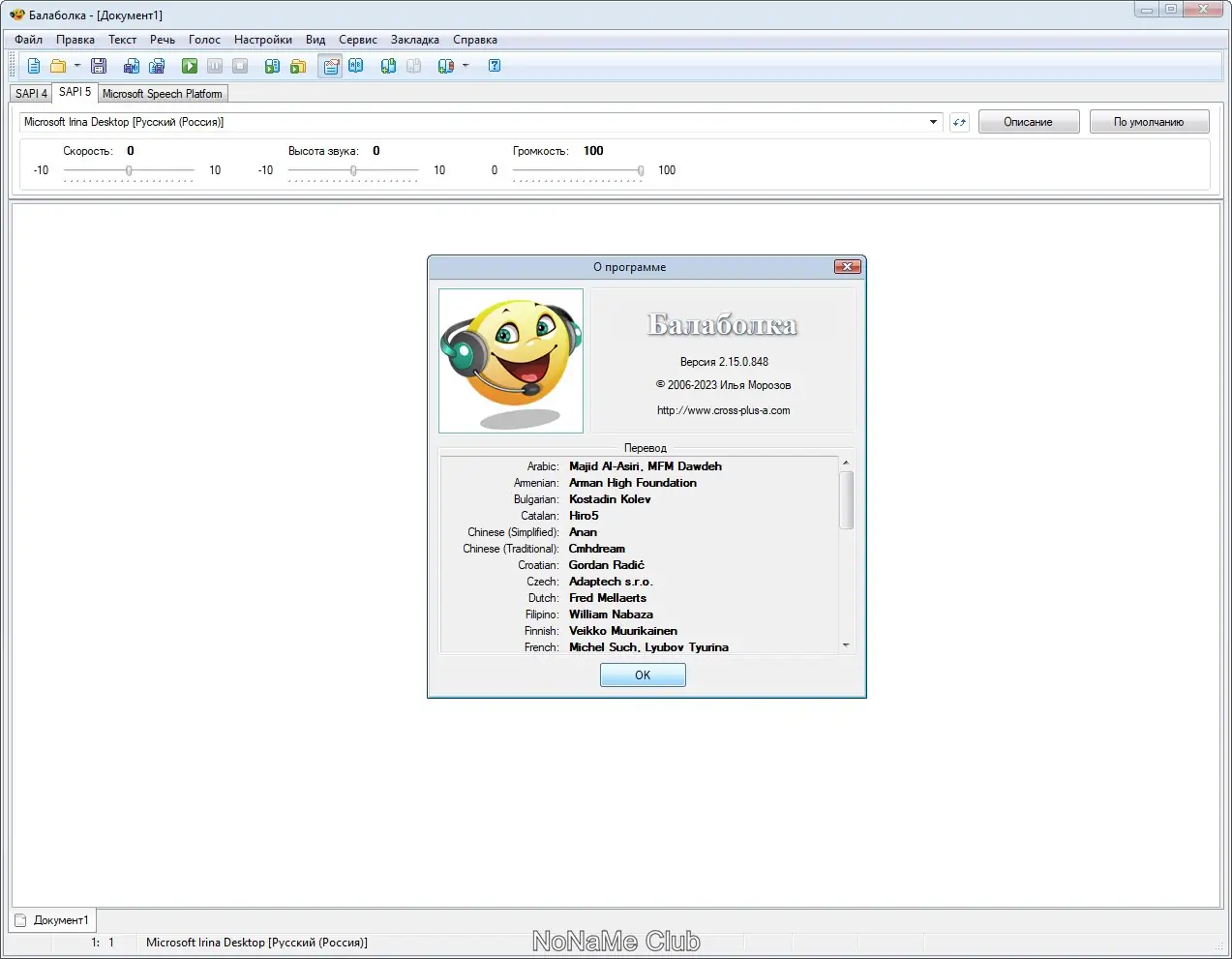 - Обратить внимание на необходимость наличия хотя бы одного синтезатора речи в системе.