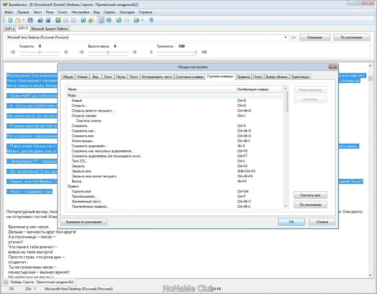 - Обеспечивает воспроизведение текста с управлением через системный трей или глобальные горячие клавиши.