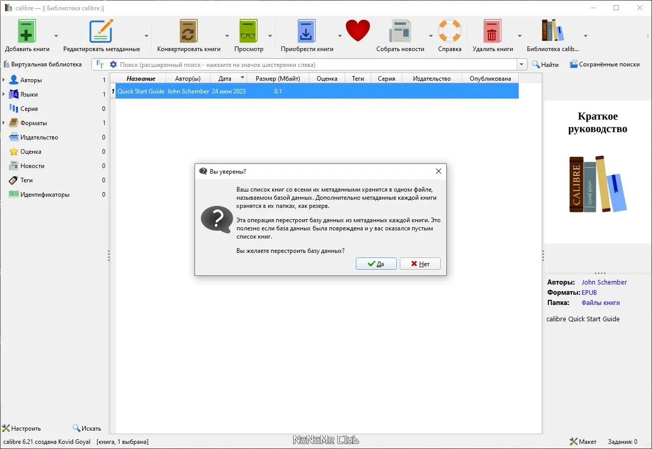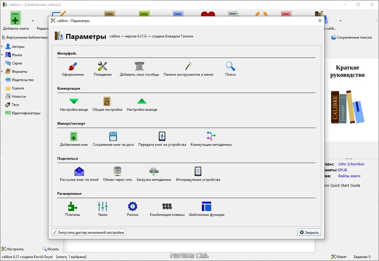- При первом запуске произведите базовую настройку и каталог библиотеки.
