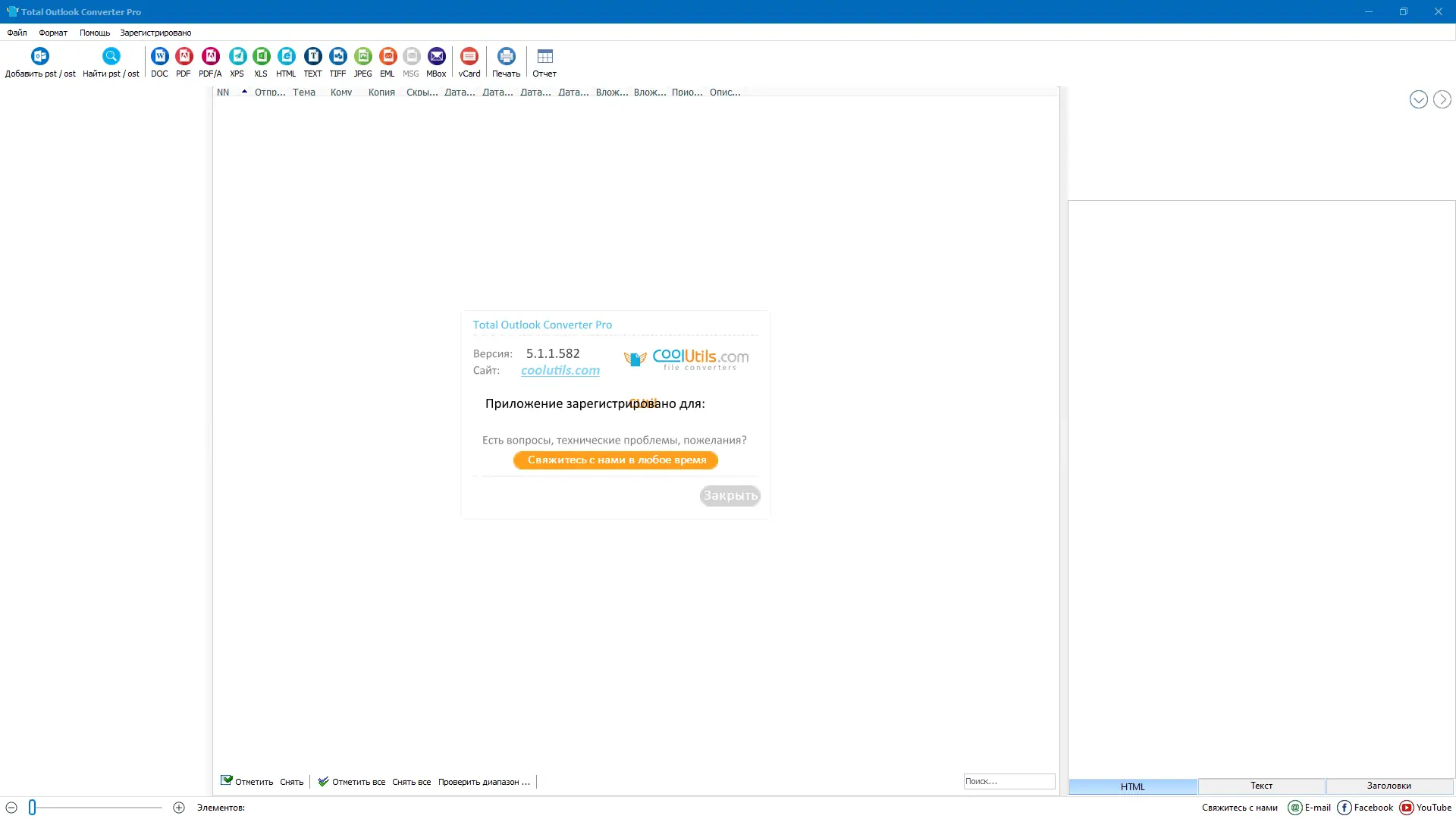 Coolutils Total Outlook Converter – универсальное решение для преобразования электронной почты Outlook с вложениями в различные форматы, такие как PDF, DOC, HTML, TIFF, TXT, EML, MBOX. Программа предназначена для архивирования, резервного копирования и оперативного обмена информацией. Её интерфейс прост и интуитивно понятен, а расширенные функции делают работу с почтой максимально удобной даже для начинающих пользователей.