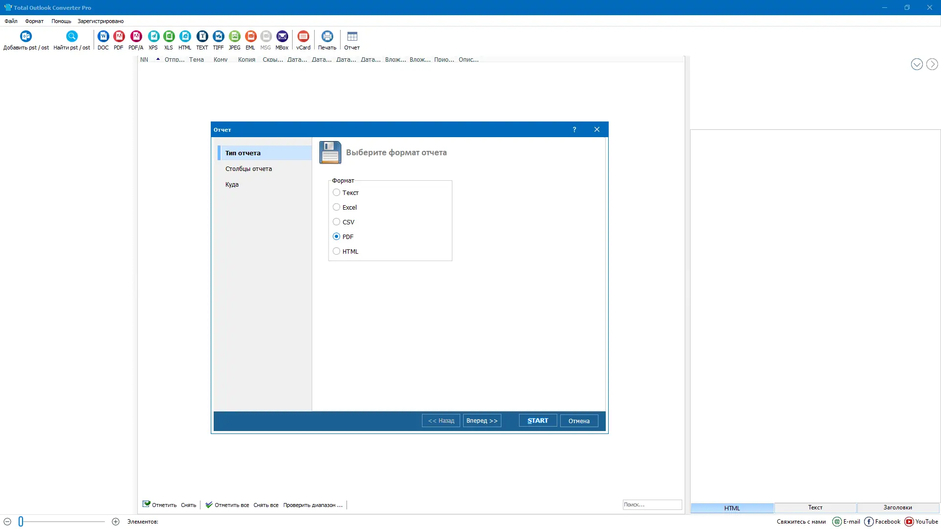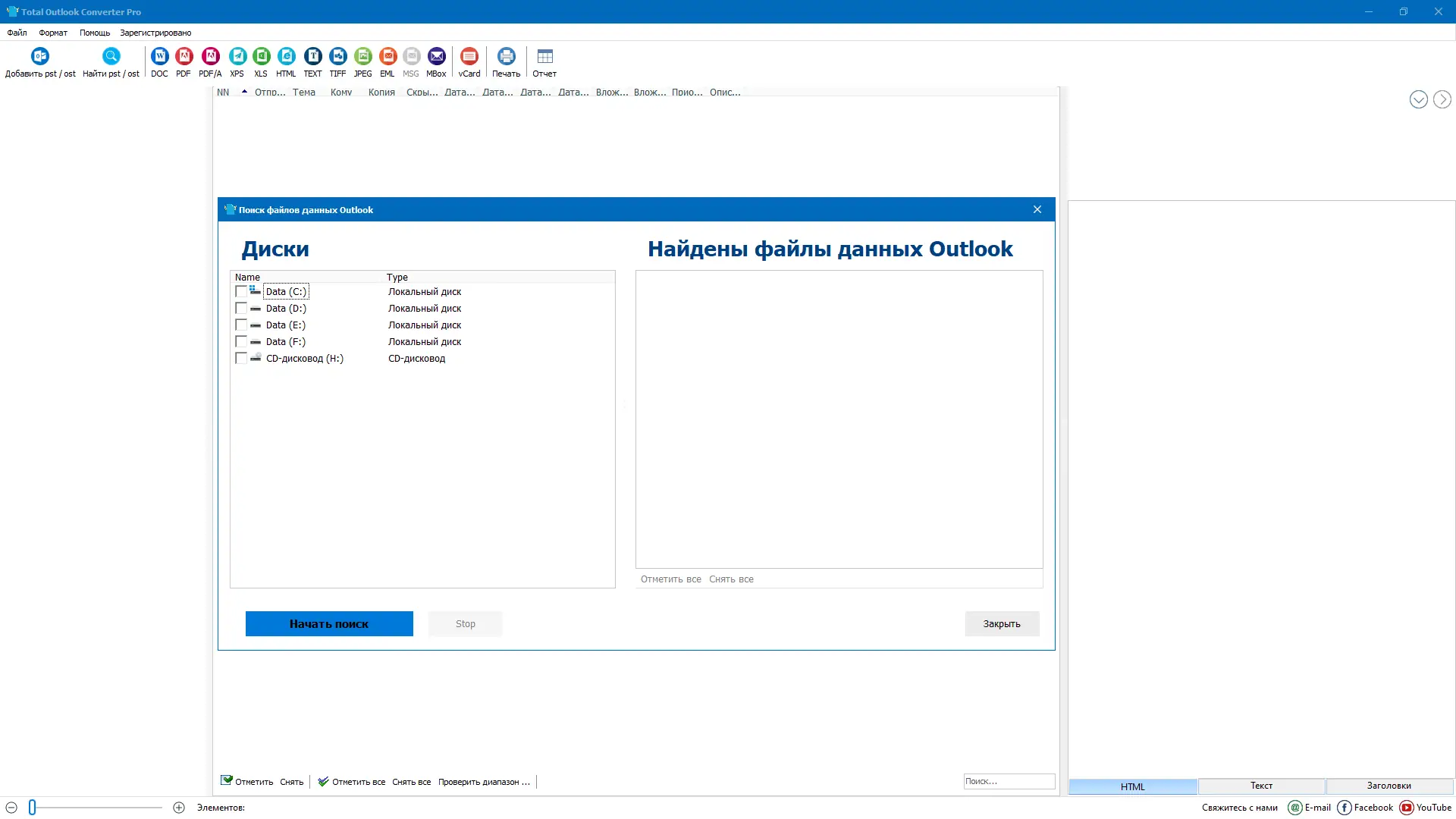 - Конвертация электронных писем Outlook в PDF, DOC, HTML, TIFF, TXT, EML, MBOX с сохранением вложений и метаданных.