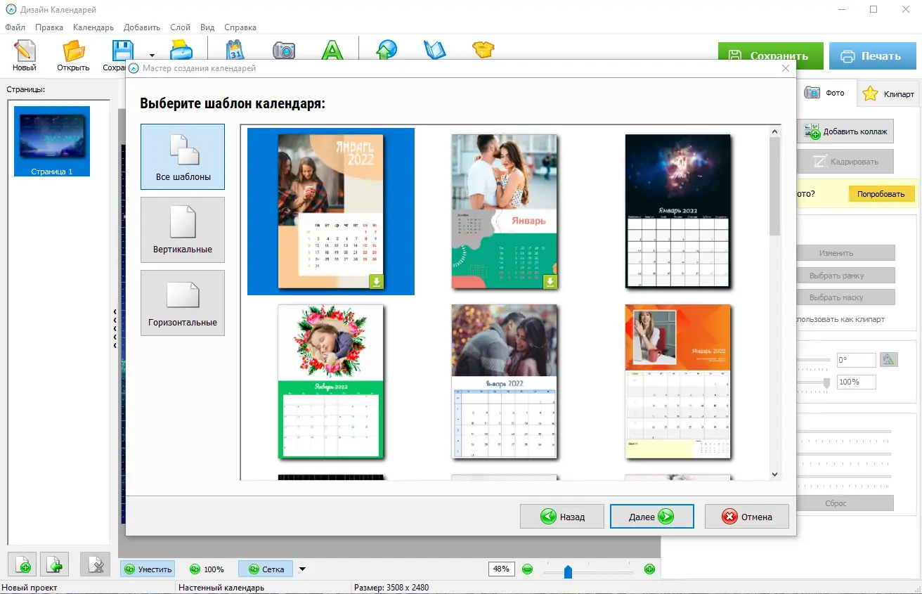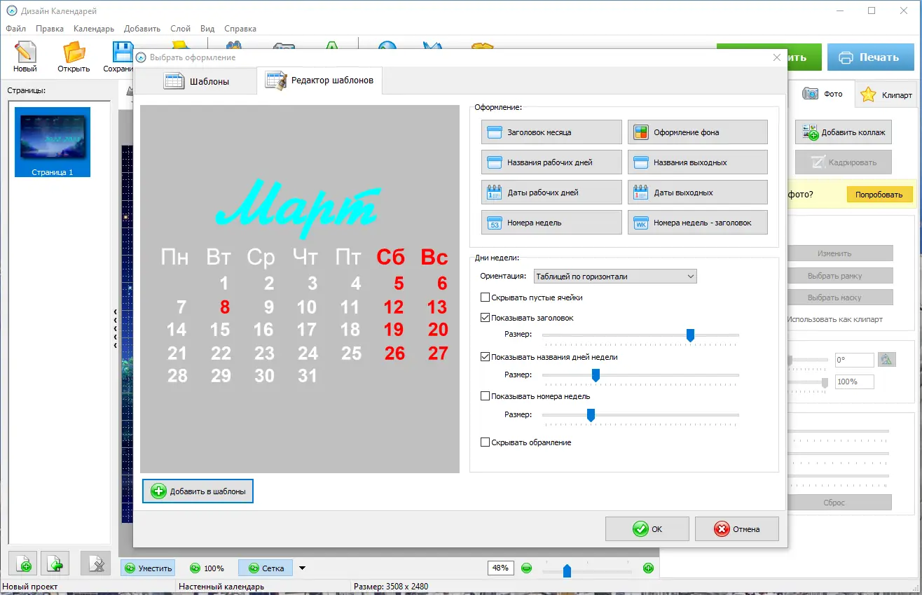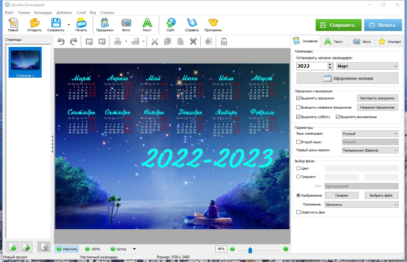 Преимущество программы — это её простота и богатство функций, что позволяет создавать профессиональные календари без особых навыков дизайна.