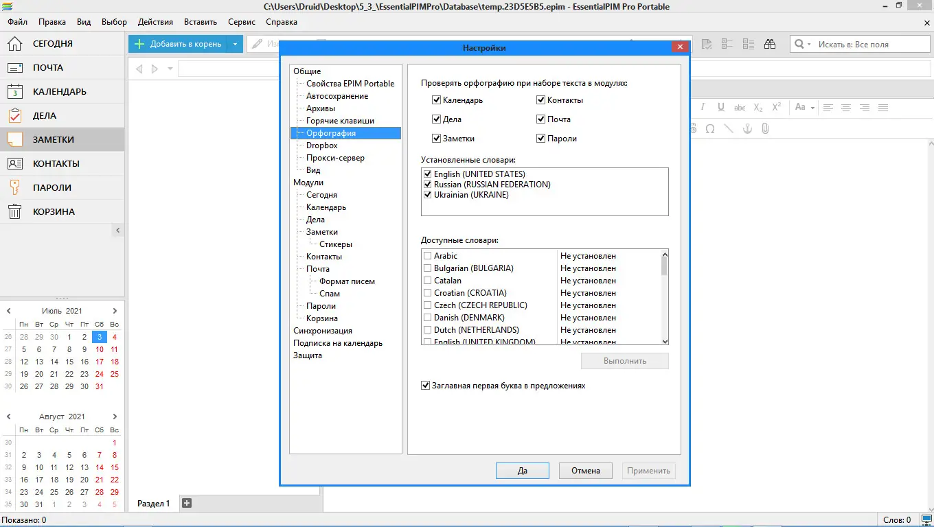 EssentialPIM — мощный менеджер персональной информации, объединяющий инструменты для организации календаря, задач, заметок и контактов. Благодаря интуитивному интерфейсу и широкому функционалу, он становится незаменимым помощником для эффективного управления делами как в личных, так и в профессиональных целях. Поддержка импорт/экспорт данных, синхронизация с популярными устройствами и облачными сервисами, а также возможность работы с переносных носителей делают его универсальным решением. Возможность запуска с USB-накопителей (в том числе U3 SmartDrive) позволяет использовать программу без установки, что особенно удобно для пользователей, ценящих мобильность и безопасность информации.
