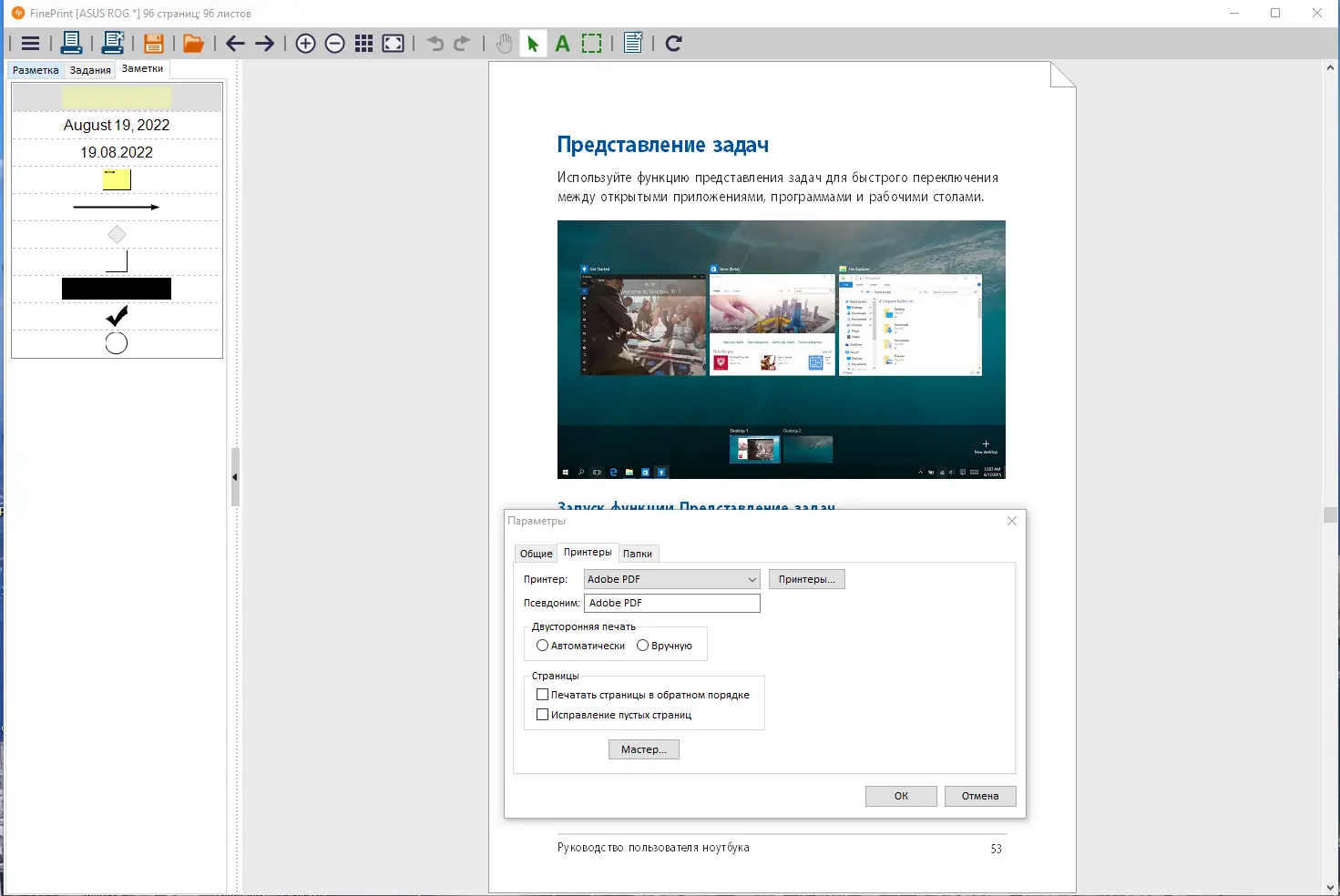 - Печать нескольких страниц на одном листе (2/4/8 страниц)