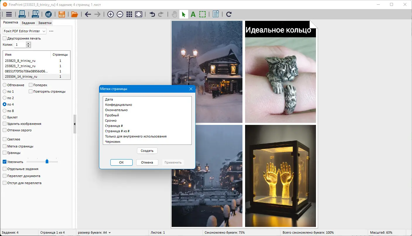 FinePrint представляет собой универсальный драйвер для принтеров, предназначенный для повышения эффективности и комфорта при печати документов. Он позволяет выполнять предпросмотр страниц, объединять задания, создавать фирменные бланки, добавлять водяные знаки, а также реализует режимы экономии чернил и бумаги. Работа с различными форматами изображений и документов делает его незаменимым инструментом для офисов и домашних пользователей. Совместим со всеми моделями принтеров, он обеспечивает быструю настройку и использование через графический интерфейс. Дополнительная возможность автоматической работы нескольких виртуальных принтеров позволяет быстро переключаться между режимами печати, например, для создания брошюр или печати на фирменных бланках.