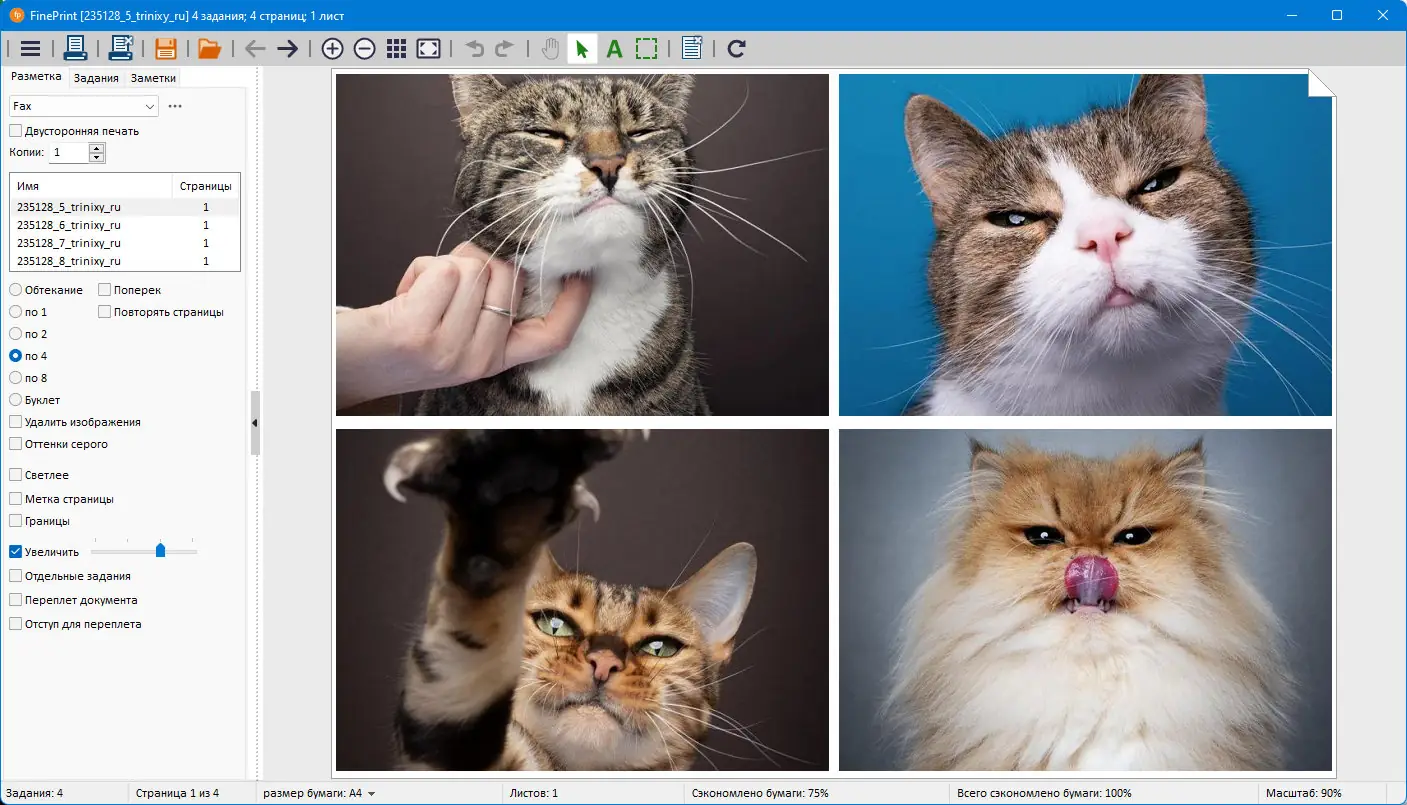 - Объединение нескольких заданий печати в один документ для оптимизации работы