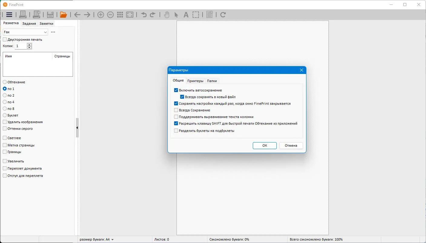 FinePrint — универсальный драйвер для принтеров, который значительно повышает функциональность стандартных устройств. Программа позволяет осуществлять предпросмотр страниц перед печатью, печатать несколько страниц на одном листе, создавать брошюры, добавлять водяные знаки, заголовки и подвали. Она совместима со всеми моделями принтеров, кроме того, работает с виртуальными принтерами для автоматической печати брошюр или фирменных бланков. Использование FinePrint способствует снижению затрат на краску и бумагу, а также упрощает обработку сложных документов благодаря объединению заданий в один файл. Возможности программы делают процесс печати более профессиональным и экономичным, а управление — максимально простым и интуитивным.