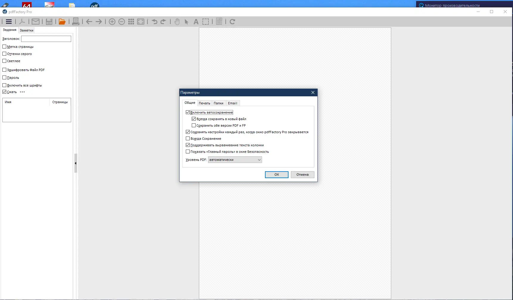 Установка программы выполняется быстро и без особых сложностей. После завершения установки в системе появится виртуальный принтер с именем «FinePrint pdfFactory», настроенный по умолчанию на формат A4. Для изменения параметров необходимо перейти в свойства принтера через меню «Пуск > Настройка > Принтеры».