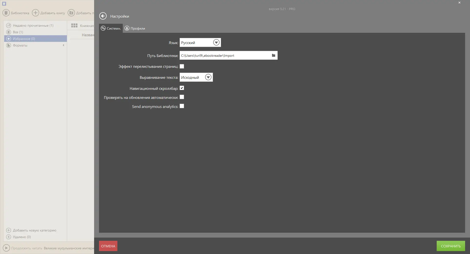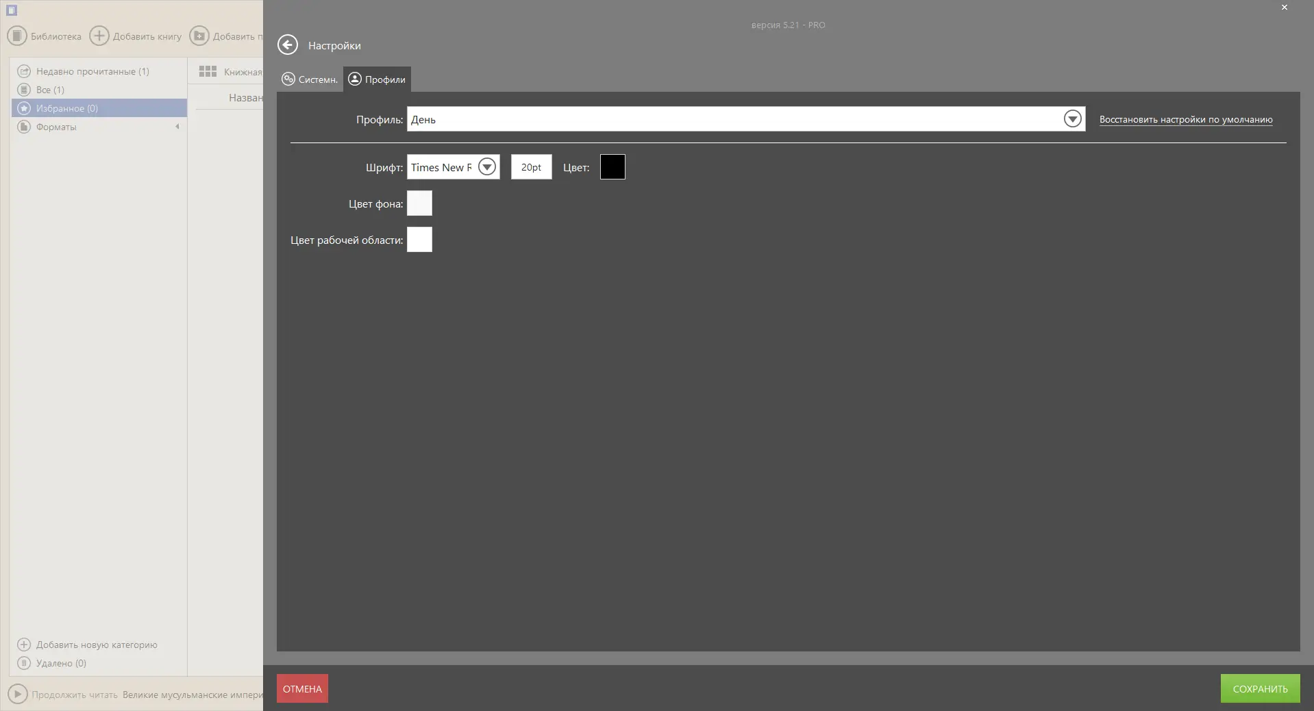 - Маленькое количество настроек внешнего вида по сравнению с более сложными читалками.