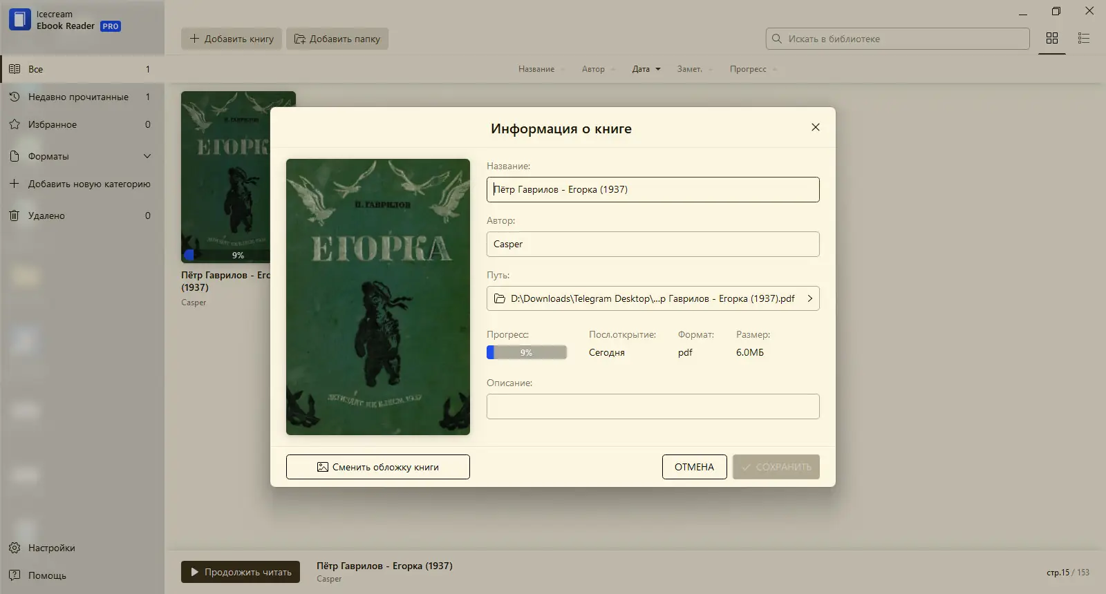 - Многоформатность: поддержка ePub, MOBI, FB2, CBR и других популярных форматов.