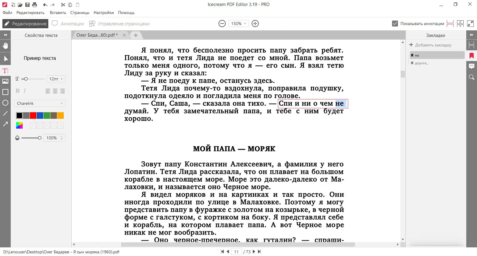 - Редактирование текста — изменяйте любой текст в документе быстро и удобно.