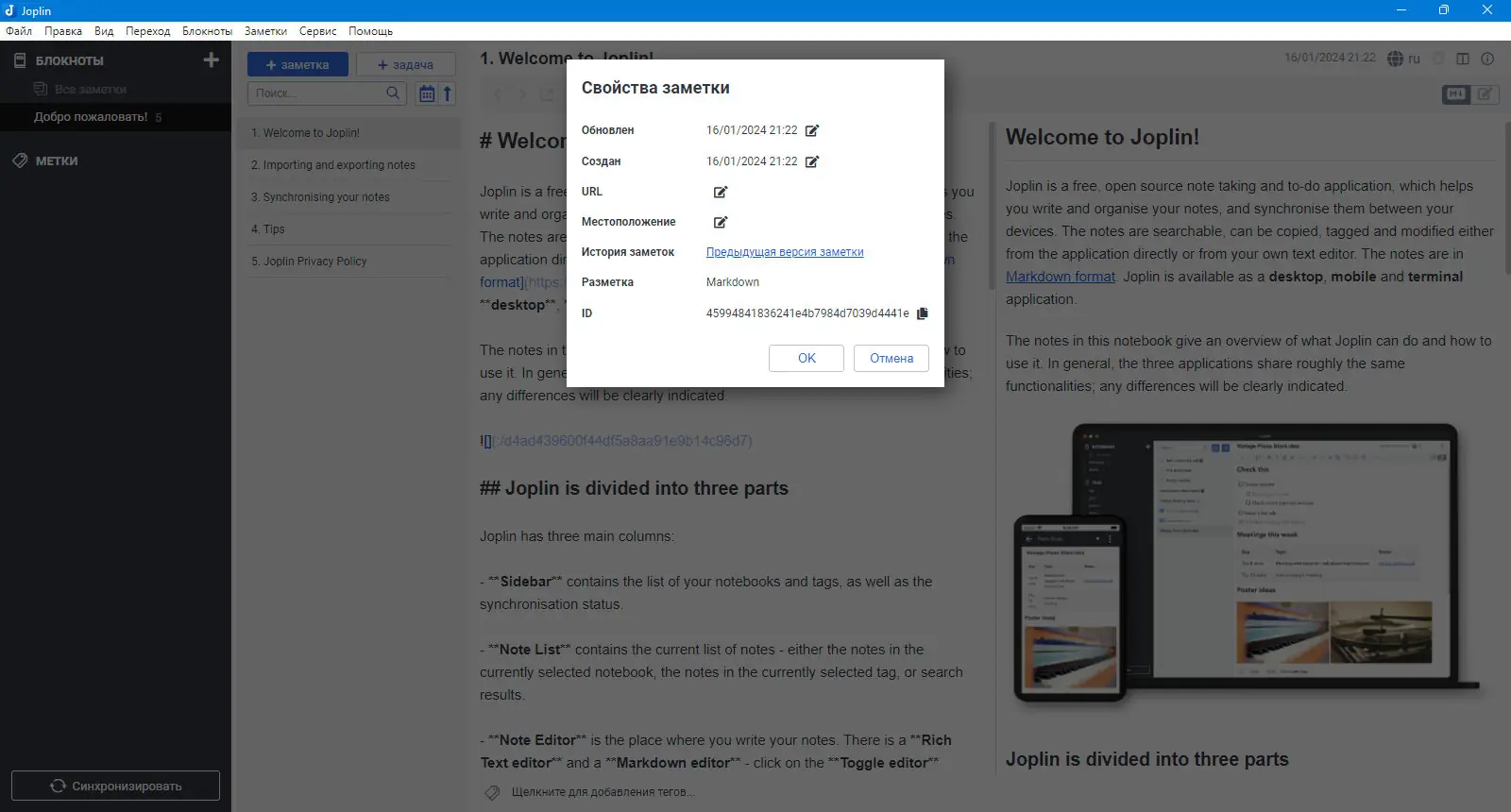 Joplin — это бесплатное приложение с открытым исходным кодом, предназначенное для ведения заметок и управления делами. Оно позволяет организовать большое количество заметок, сгруппировав их по блокнотам, легко искать, копировать, помечать и редактировать как прямо в приложении, так и с помощью сторонних текстовых редакторов. Заметки создаются в формате Markdown, что обеспечивает гибкость и удобство работы с форматированием. Благодаря поддержке импорта заметок из Evernote (.enex файлы) и экспорта в различные форматы, Joplin обеспечивает удобную миграцию с других платформ.