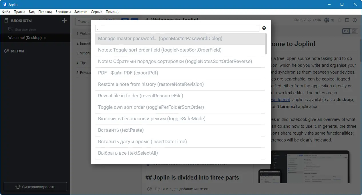 Это универсальный инструмент для ведения заметок и дел, который позволяет обрабатывать большое количество информации, структурировать её в блокноты и легко находить нужные записи благодаря мощной системе поиска. Заметки сохраняются в формате Markdown, что обеспечивает их совместимость с разными редакторами и платформами. Импортировать заметки из Evernote, включая мультимедийные ресурсы и метаданные, также очень просто. Поддержка синхронизации с облачными сервисами, такими как Nextcloud, Dropbox, OneDrive или WebDAV, позволяет держать ваши данные в актуальном состоянии на всех устройствах, сохраняя метаданные и структуру заметок. Благодаря своей гибкости и расширяемости, Joplin становится незаменимым помощником для тех, кто ценит порядок и доступность информации.
