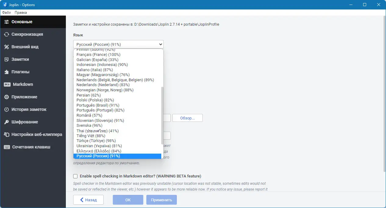 Обратите внимание, что при использовании портативной версии важно правильно скопировать каталог с данными для сохранения всей структуры заметок.