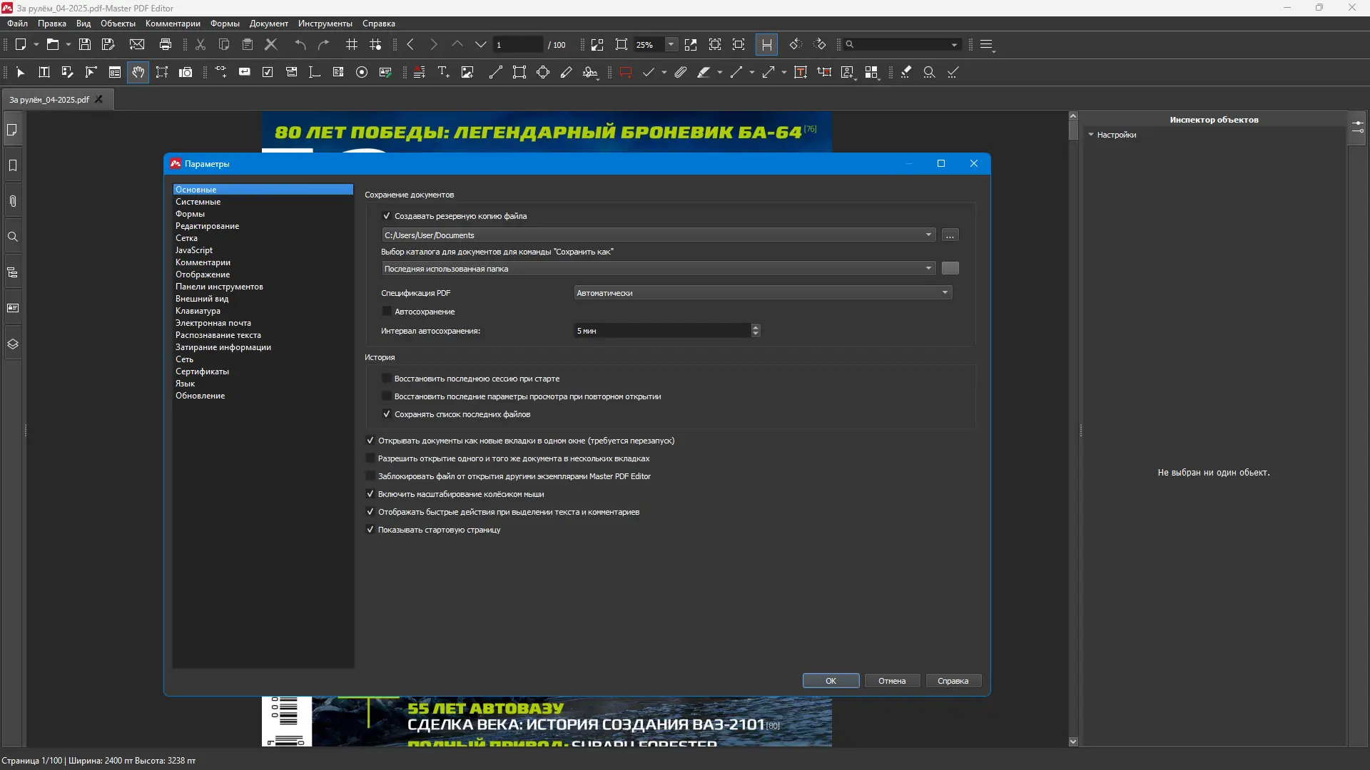- Редактирование текста и объектов в PDF, включая вставку изображений, изменение их размера и сохранение