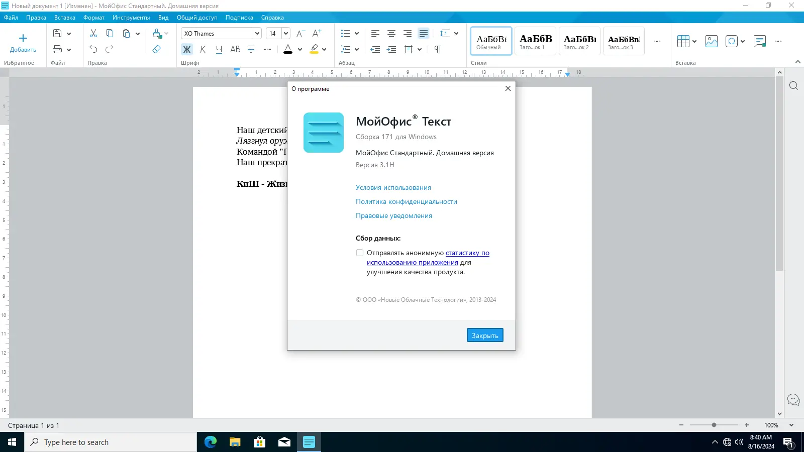 МойОфис — это комплект офисных приложений домашней версии, предназначенный для некоммерческого использования. Включает в себя инструменты для работы с текстами, таблицами и презентациями, аналогичные популярным продуктам MS Office — Word, Excel и PowerPoint. Программа устанавливается на ПК и работает полностью офлайн, что обеспечивает надежность и безопасность работы без необходимости подключения к интернету.