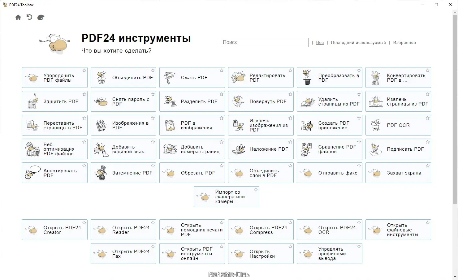 - Широкий функционал для работы с PDF — создание, редактирование, защита, слияние и разделение файлов.