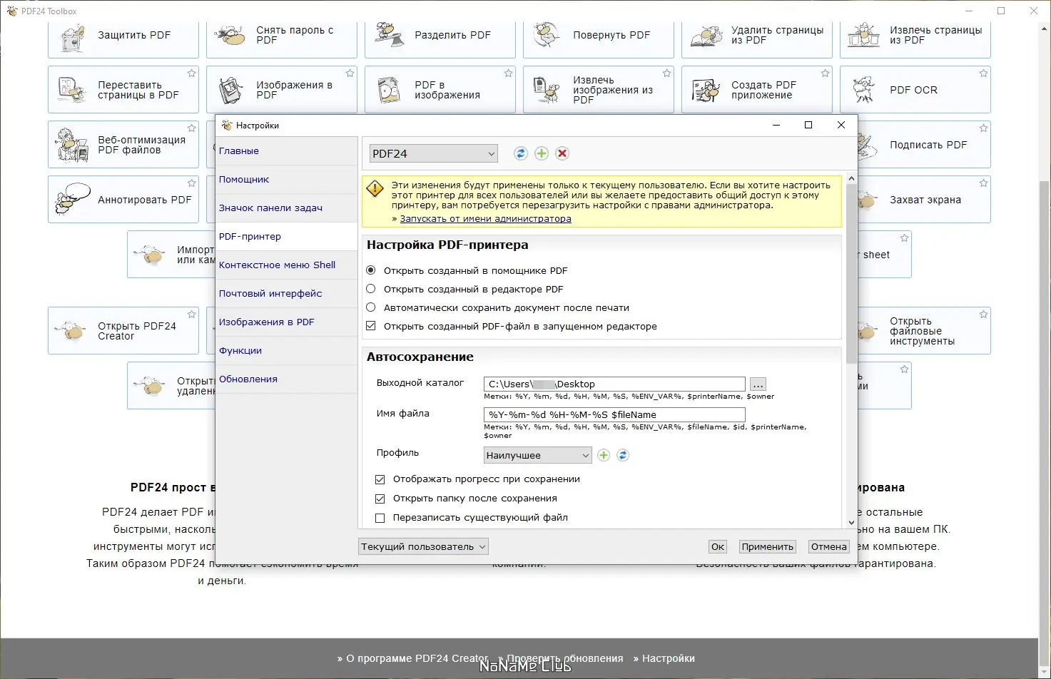 PDF24 Creator — это универсальный инструмент, позволяющий практически из любого графического изображения (в том числе PNG, JPEG, BMP, TIFF, PSD) быстро создавать PDF-документы с помощью виртуального принтера. Программа предоставляет удобные средства для просмотра, объединения, разделения, извлечения страниц и добавления информации к PDF. Также реализованы функции защиты документов паролем, подписи и захвата экрана, что делает её комплексным решением для работы с PDF файлами как для личного, так и для корпоративного использования.