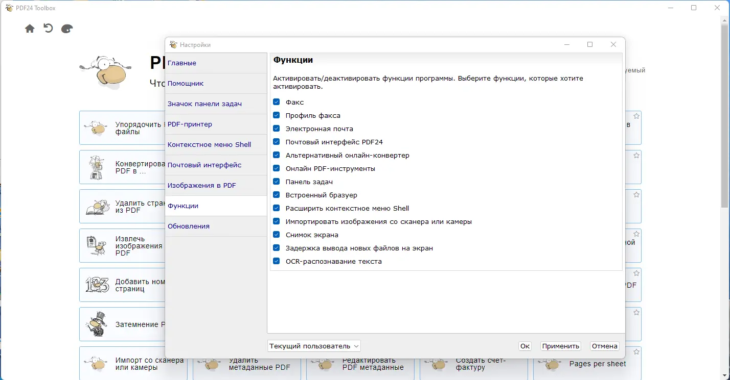 PDF24 Creator — бесплатная программа, которая позволяет легко создавать и редактировать PDF-документы практически из любого графического изображения. Инструмент поддерживает работу с форматом PNG, JPEG, BMP, PCX, TIFF и PSD, а также обеспечивает возможность печати через виртуальный принтер.