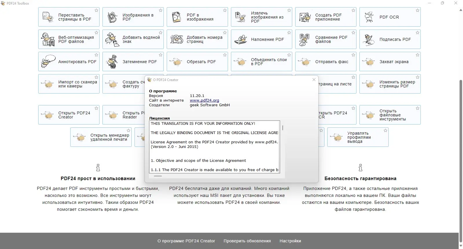 PDF24 Creator — бесплатная программа для создания, редактирования и управления PDF-документами, которая работает на различных версиях Windows и не требует затрат на покупку или лицензию.