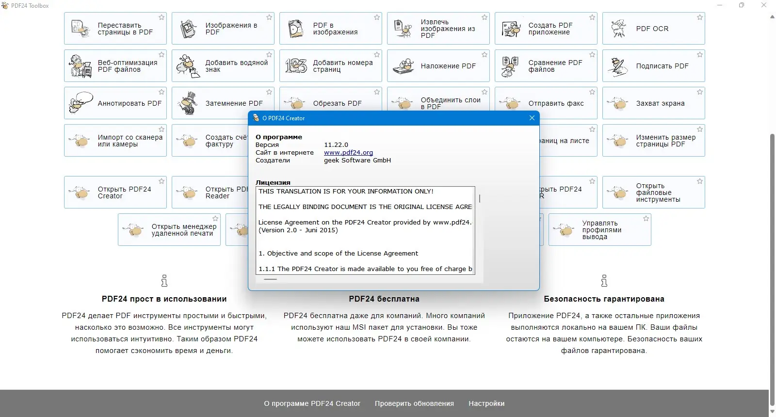 PDF24 Creator — это мощное и универсальное средство для работы с PDF-документами, сочетающее богатый функционал с простотой использования. Гибкая настройка параметров, высокий уровень автоматизации и отсутствие стоимости делают его привлекательным выбором для широкого круга пользователей.