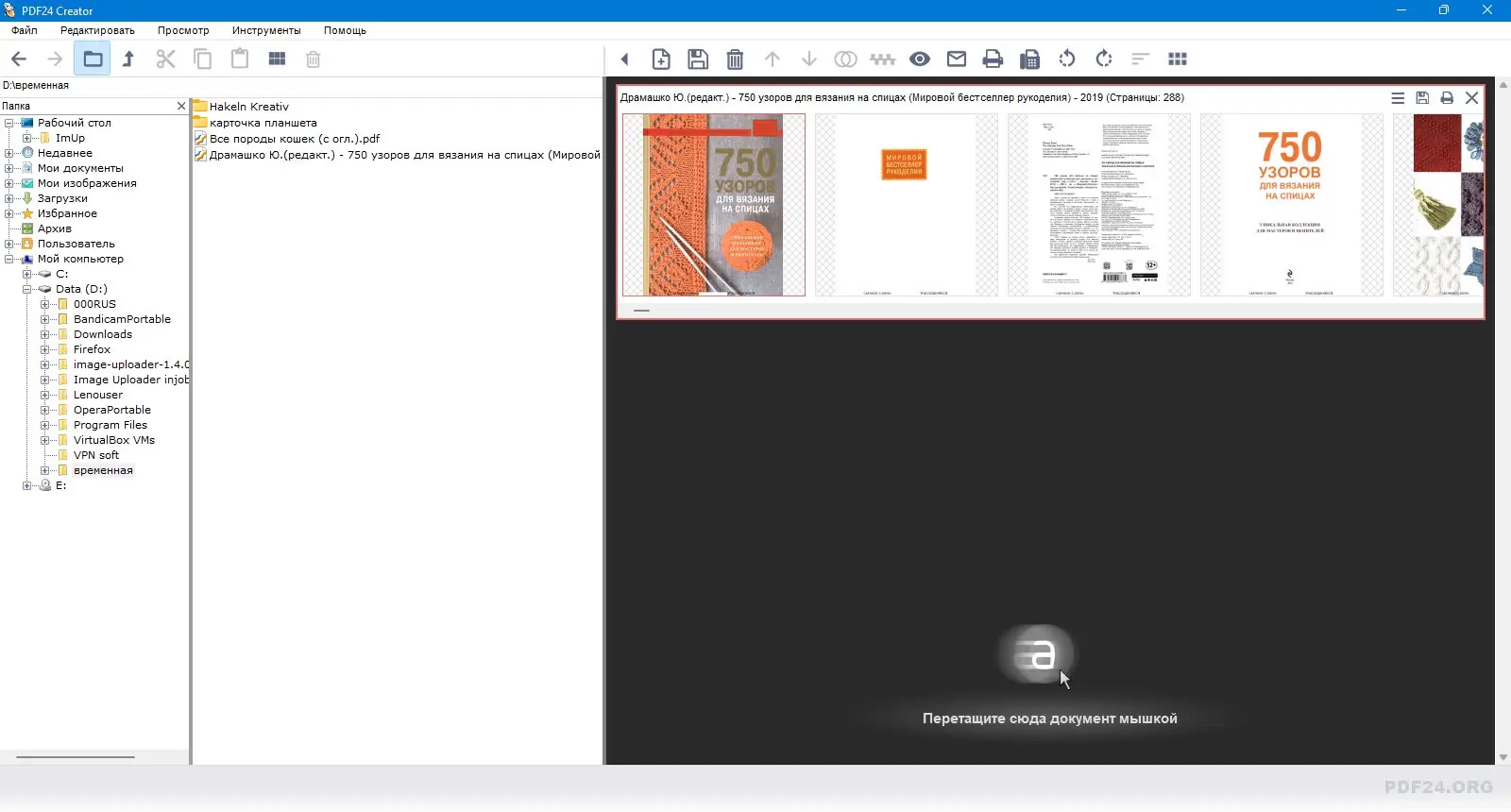 PDF24 Creator — это бесплатная программа, позволяющая легко создавать PDF-документы из различных изображений и документов, а также выполнять множество операций с PDF файлами. С помощью виртуального принтера и встроенных инструментов вы сможете конвертировать файлы, редактировать свойства, объединять и разделять документы, защищать их паролем и осуществлять другие действия для удобной работы с PDF форматами.