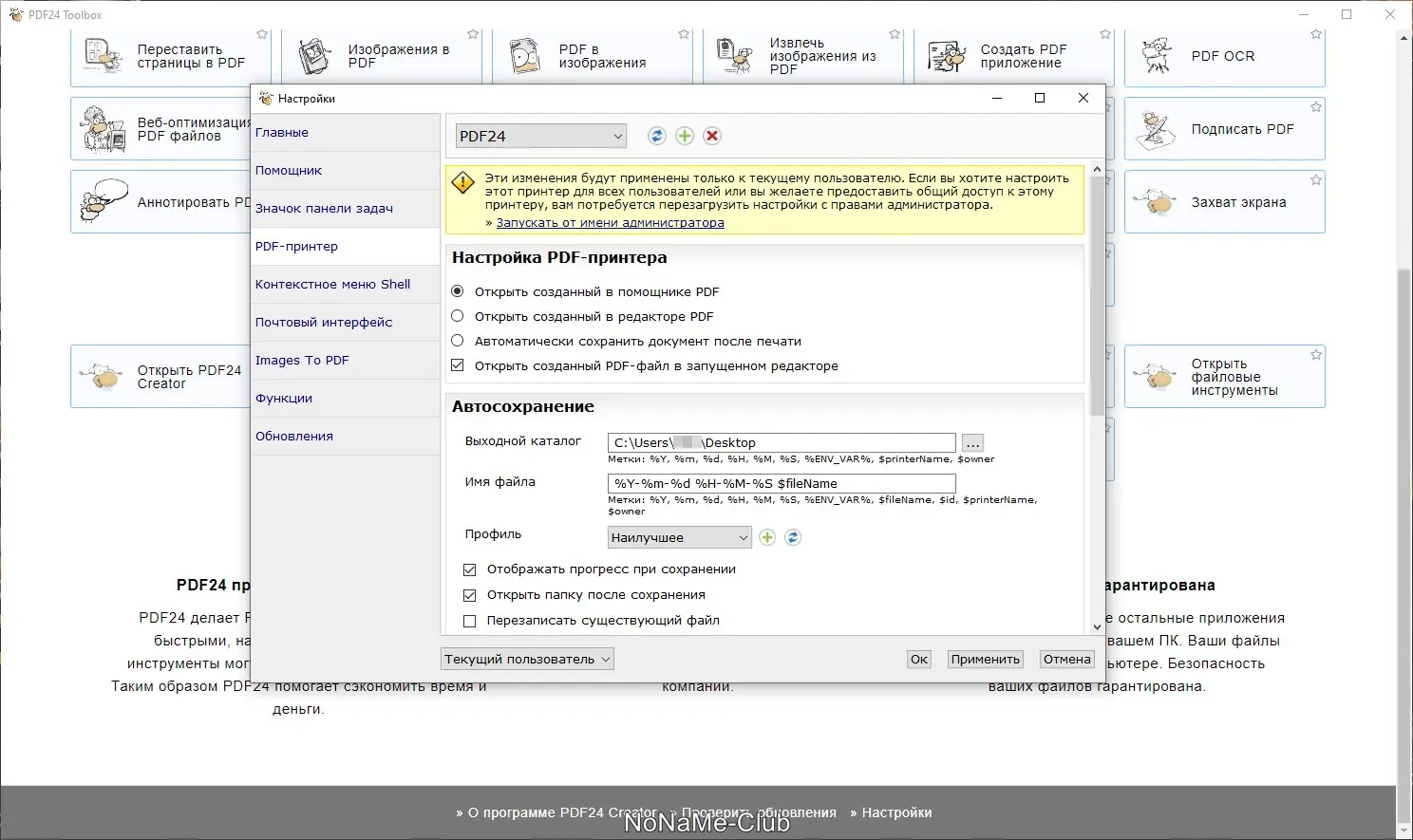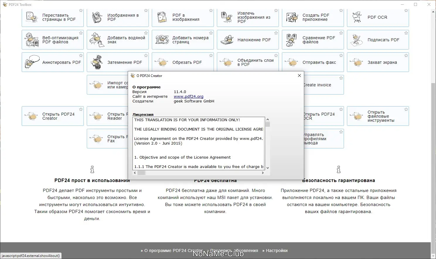 Дополнительно | Подключение к сети для обновлений и активации, наличие PDF24 Creator или его русская версия |