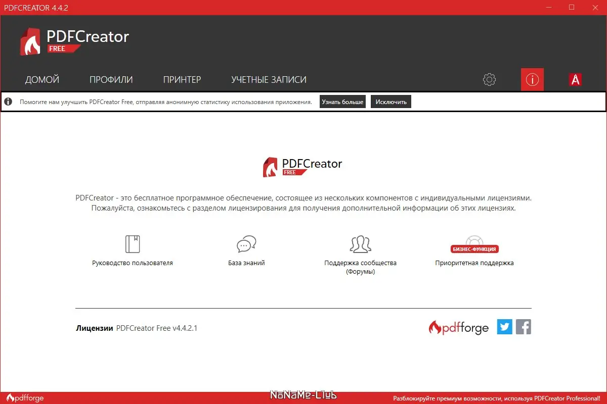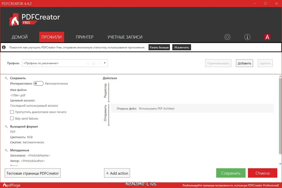 PDFCreator – бесплатная программа для конвертирования документов в формат PDF, обеспечивающая быстрый и удобный способ создания профессиональных файлов. Интуитивный принцип работы состоит в том, что пользователь выбирает документ, отправляет его на печать через виртуальный принтер, созданный программой, и сохраняет в нужном формате. Поддерживаются различные форматы изображений, такие как JPG, BMP, TIFF, PNG, а также PostScript и EPS, что делает продукт универсальным инструментом для работы с документами и изображениями.