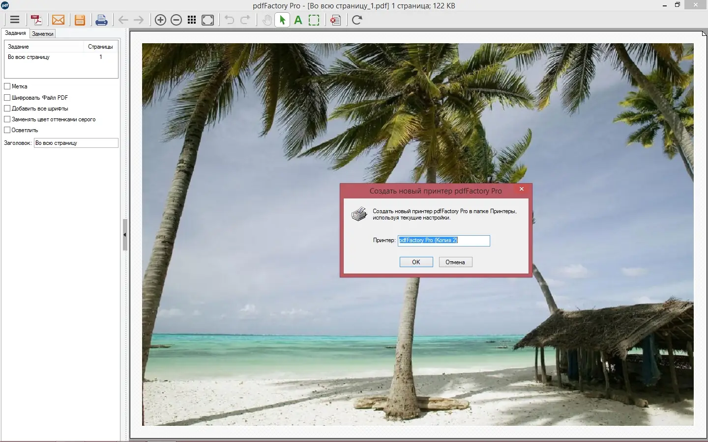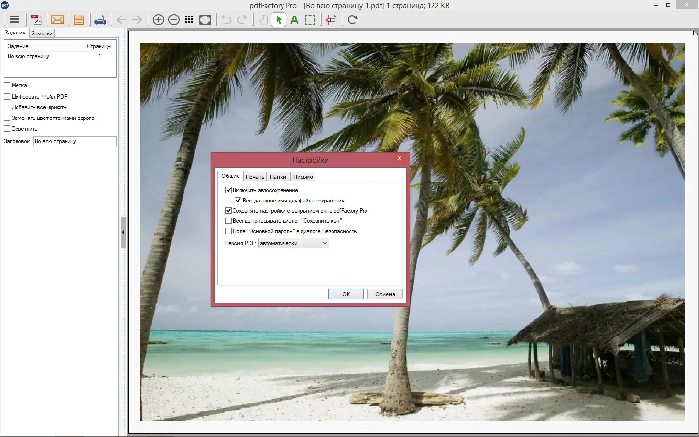 Обратите внимание, что передача документа на печать осуществляется через виртуальный драйвер, а не на физический принтер, поэтому все настройки и параметры применяются только к PDF-файлу.