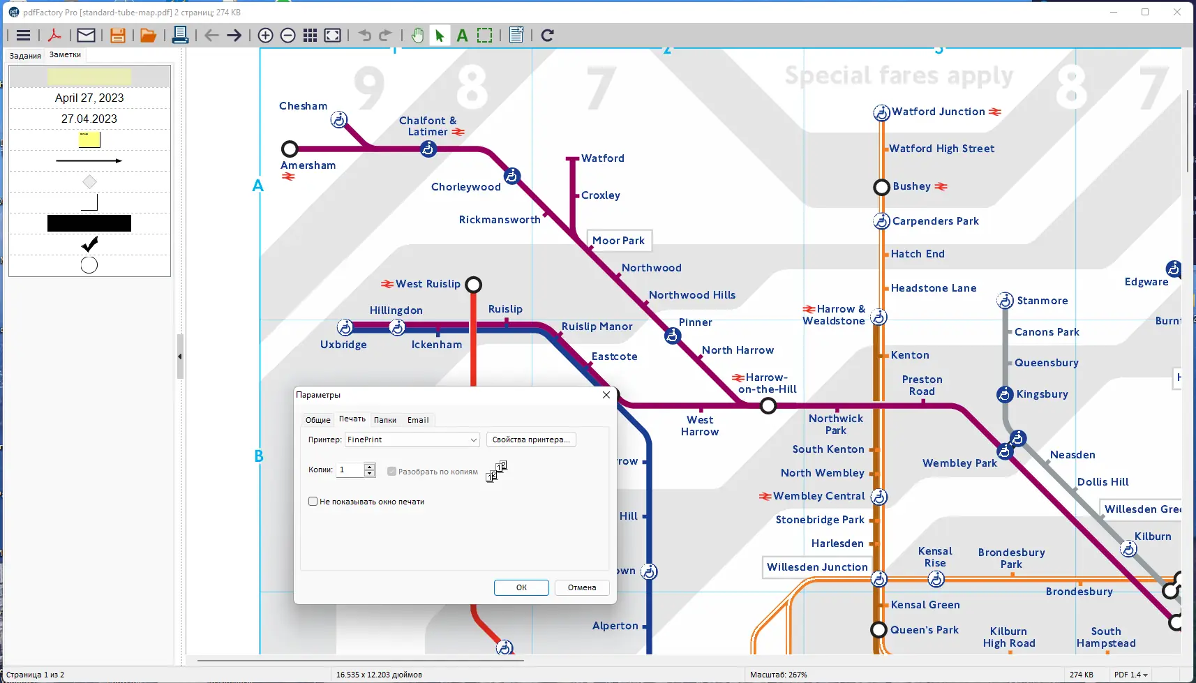 Благодаря этому приложению можно объединять документы, экспортировать их на электронную почту, использовать автоматическую функцию сохранения и применять прямые интернет-ссылки в PDF-файлах. Поддерживается настройка габаритов листов, ориентации и метрик печати через интерфейс Windows. После установки создаётся виртуальный принтер под именем «FinePrint pdfFactory», что позволяет конвертировать любые печатные материалы в PDF. Также реализована возможность настройки качества изображения и управления шрифтами, что значительно ускоряет работу и уменьшает размер итогового файла.