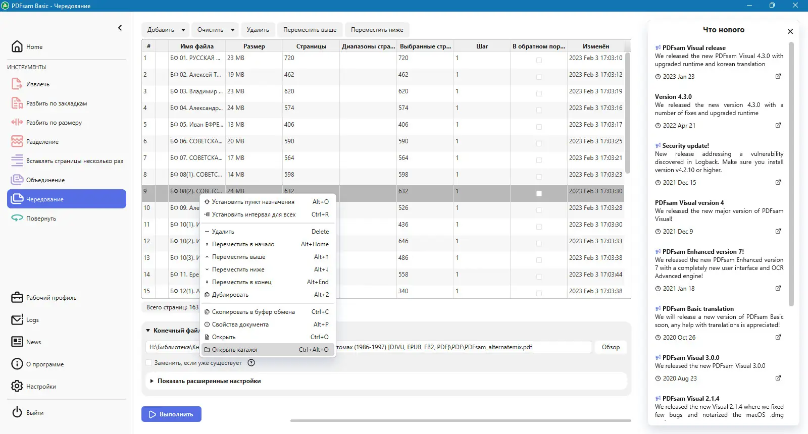 - Объединение страниц из разных PDF в один файл в прямом или обратном порядке