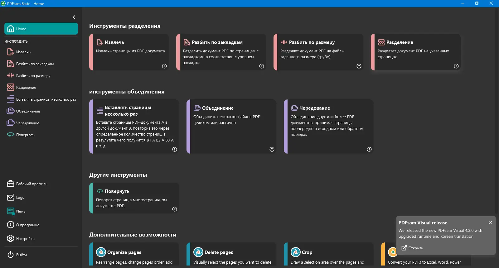 - Поддержка основных операций с PDF, включая разделение, объединение и редактирование.