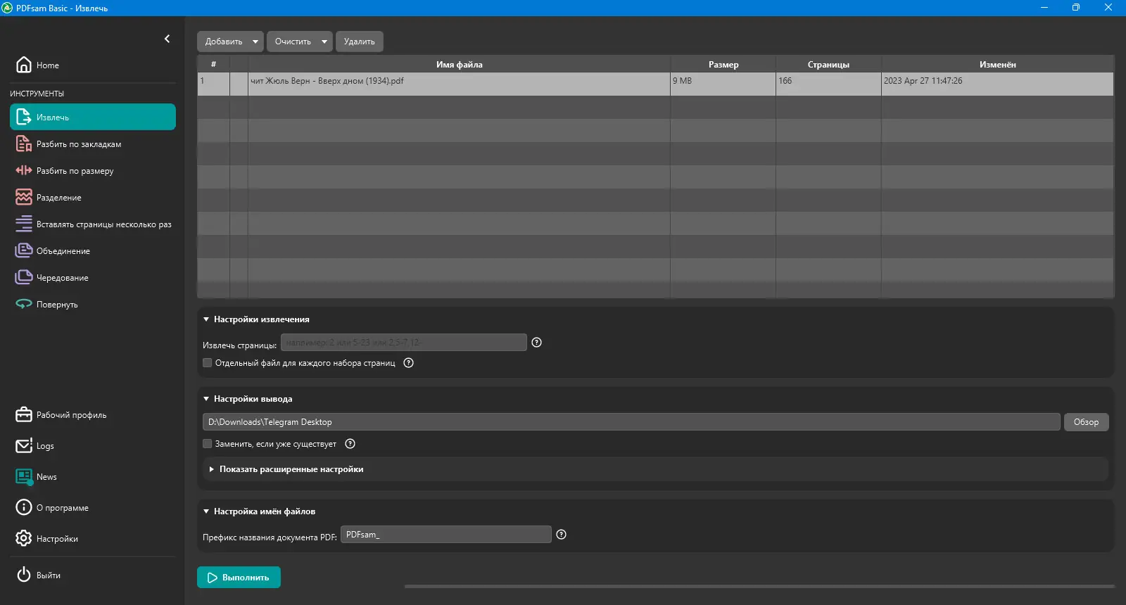 - Вырезание отдельных страниц и сохранение их в отдельные файлы.