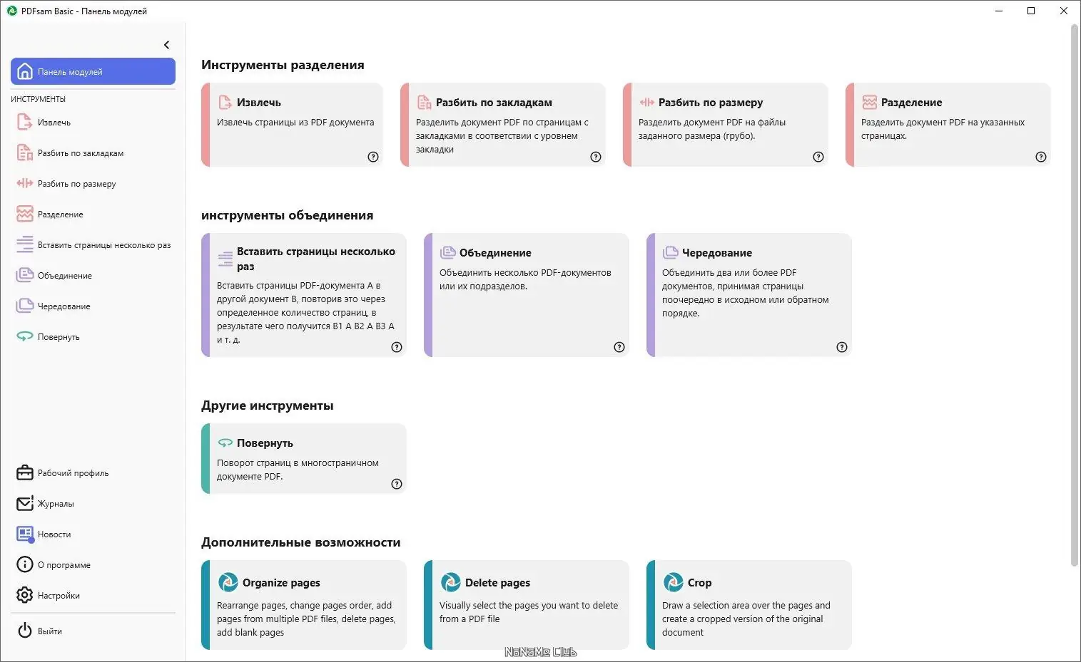 PDFsam — бесплатная и простая в использовании утилита для работы с PDF-файлами. С её помощью можно делить, объединять, вращать страницы и выполнять другие операции, упрощающие управление PDF-документами.