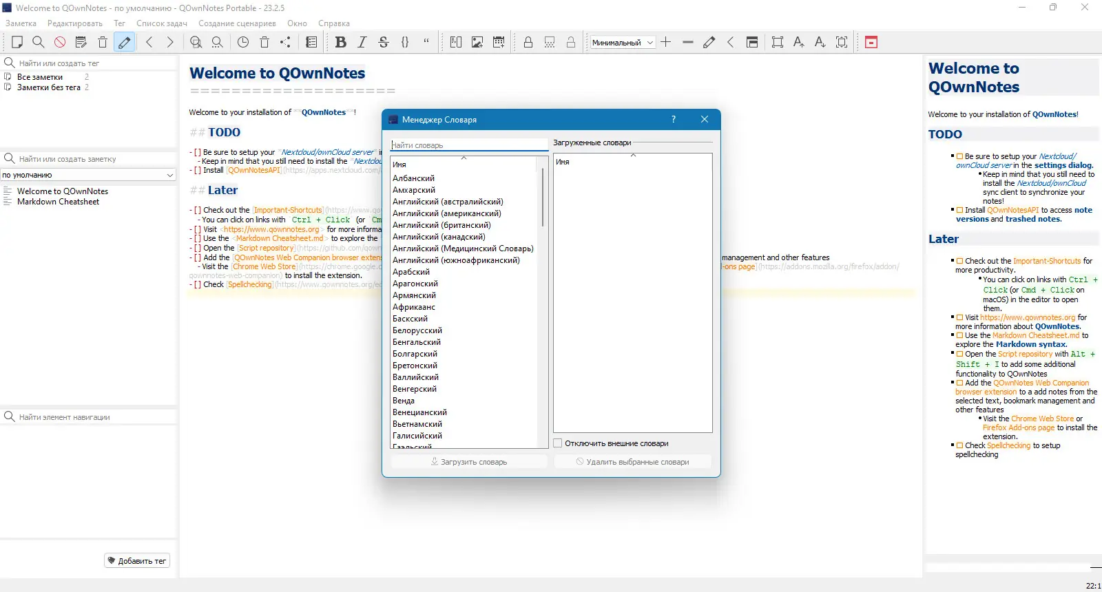 - Запустить файл QOwnNotesPortable.bat для старта приложения.